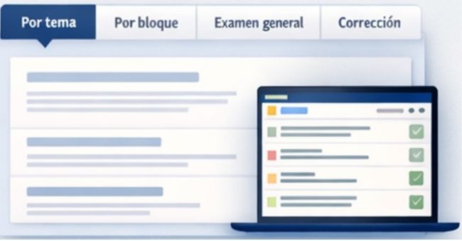 Es un sistema de entrenamiento real para detectar fallos, gestionar el tiempo  y llegar al examen con seguridad